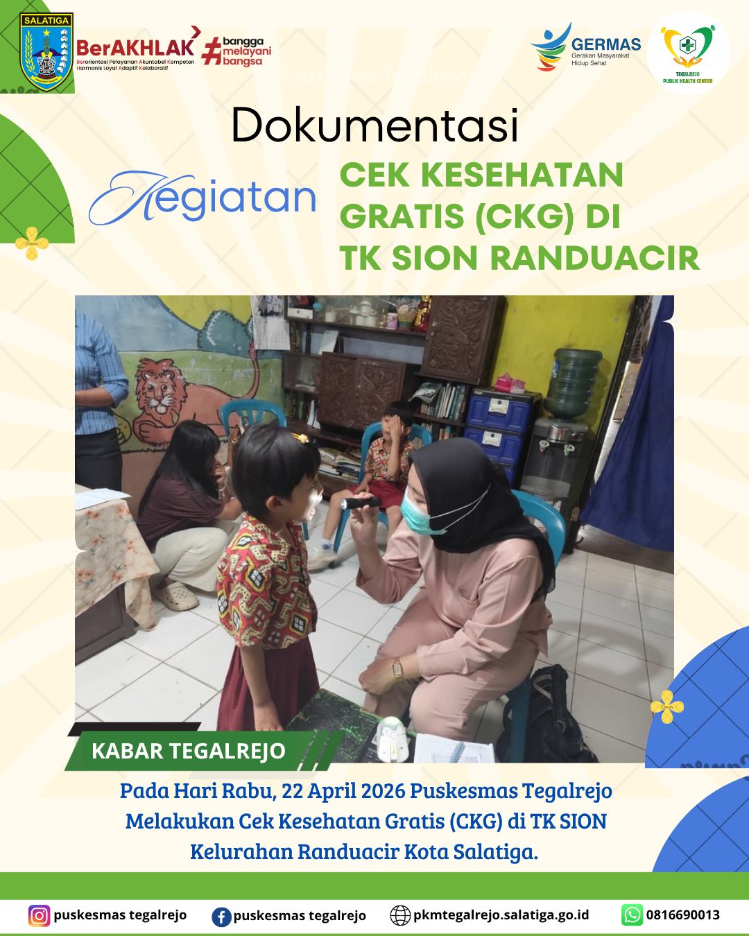 Pada Hari Rabu, 22 April 2026 Puskesmas Tegalrejo Melakukan Cek Kesehatan Gratis (CKG) di TK SION Kelurahan Randuacir Kota Salatiga.