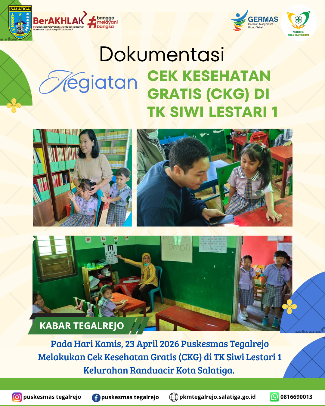 Pada Hari Kamis, 23 April 2026 Puskesmas Tegalrejo Melakukan Cek Kesehatan Gratis (CKG) di TK Siwi Lestari 1 Kelurahan Randuacir Kota Salatiga.