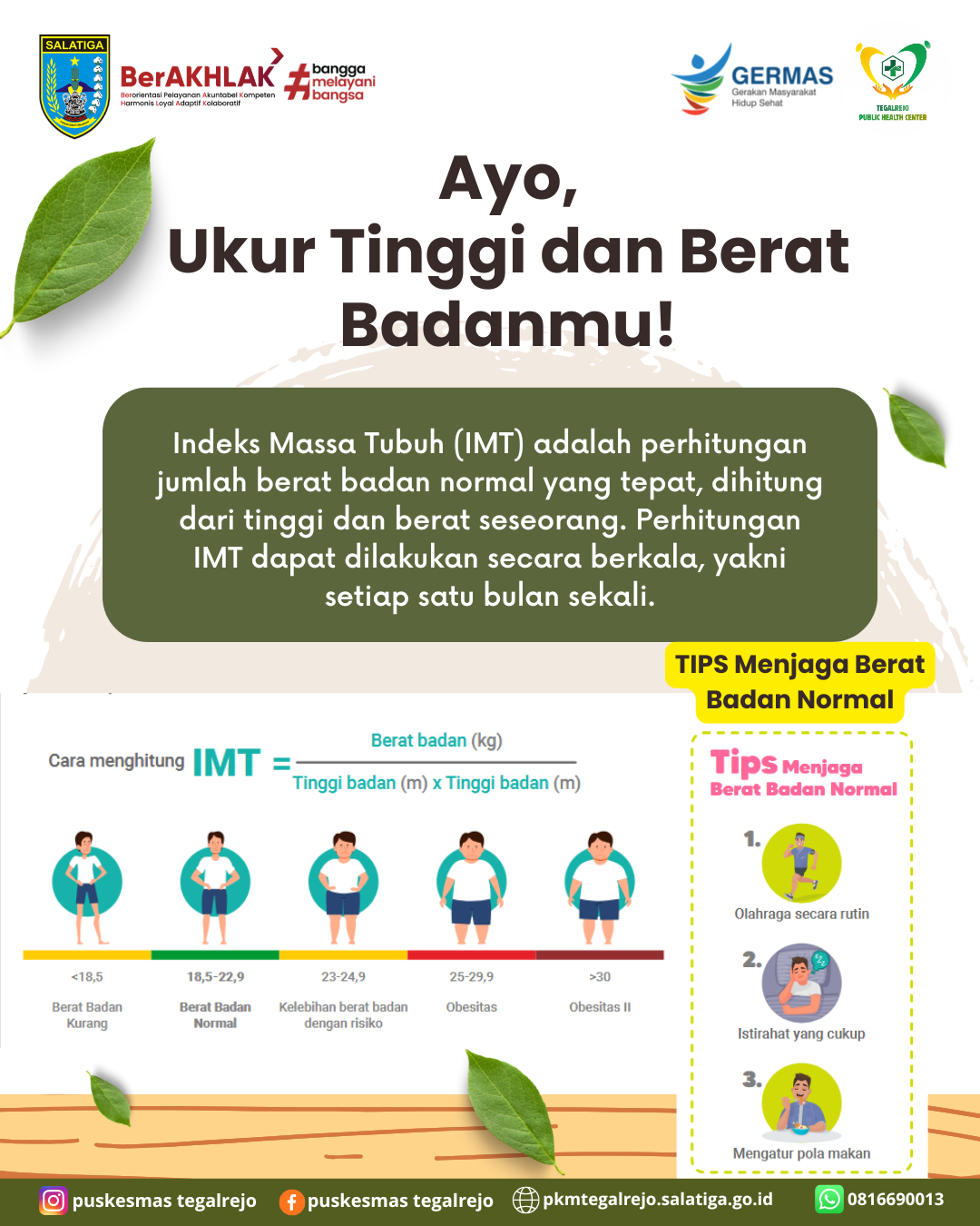 Mempunyai berat badan yang ideal tidak hanya membuat penampilan menjadi lebih menarik tapi juga syarat untuk menjaga kesehatan tubuh. Untuk mengetahui apakah berat badanmu sudah ideal, Sahabat JoSe perlu mengetahui Indeks Massa Tubuh (IMT) yang digunakan untuk menentukan kondisi kekurangan dan kelebihan berat badan pada orang dewasa. Yuk Ikuti TIPS berikut ini untuk menjaga berat…