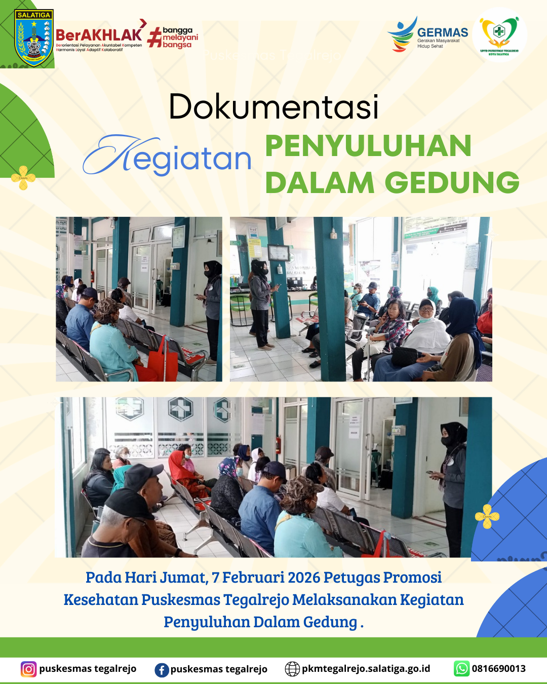 Pada Hari Jumat, 7 Februari 2026 Petugas Promosi Kesehatan Puskesmas Tegalrejo Melaksanakan Kegiatan Penyuluhan Dalam Gedung .