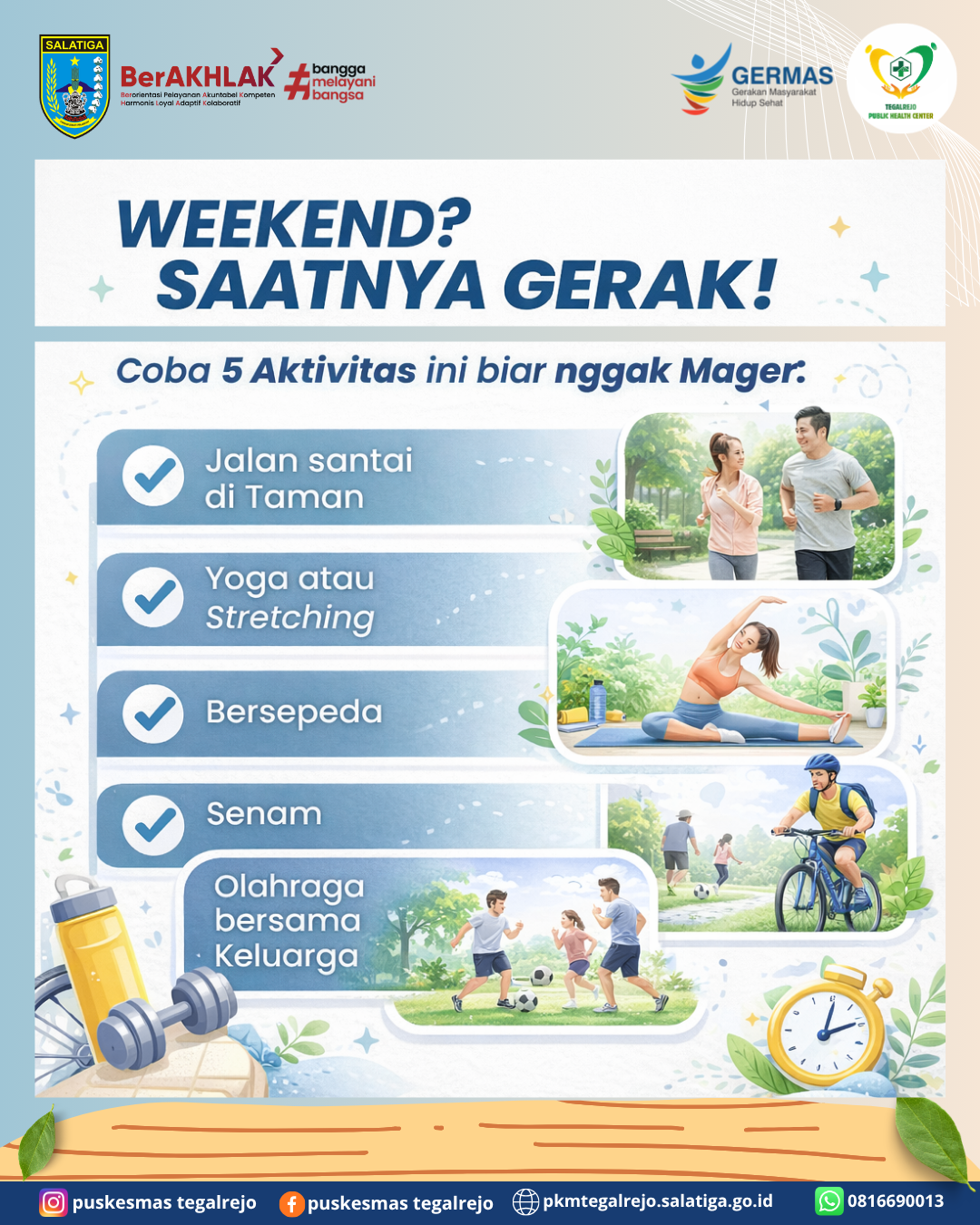 🌿 Langkah Sederhana Menjaga Kesehatan 🌿 Sehat itu nggak harus ribet, cukup mulai dari kebiasaan kecil setiap hari 💚 ✔️ Cek kesehatan rutin✔️ Makan dengan gizi seimbang✔️ Rutin berolahraga✔️ Tidur cukup✔️ Minum air putih✔️ Jaga kebersihan lingkungan ✨ Ingat, apa yang kamu lakukan hari ini adalah investasi untuk kesehatan di masa depan. 💪 Yuk, mulai…