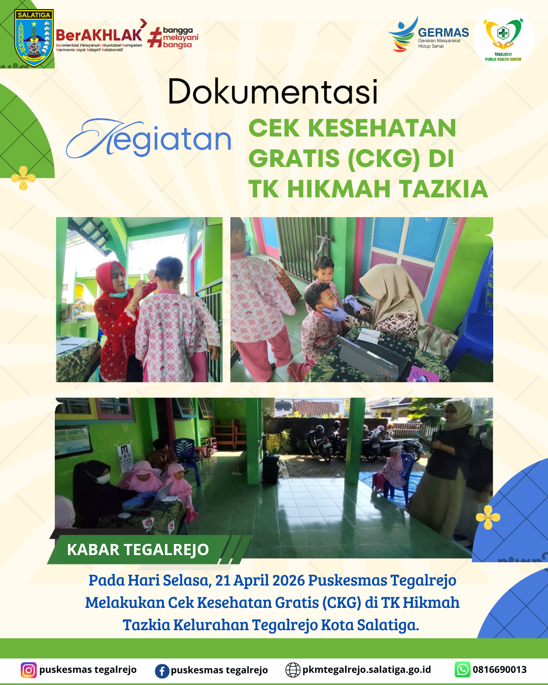 Pada Hari Selasa, 21 April 2026 Puskesmas Tegalrejo Melakukan Cek Kesehatan Gratis (CKG) di TK Hikmah Tazkia Kelurahan Tegalrejo Kota Salatiga.