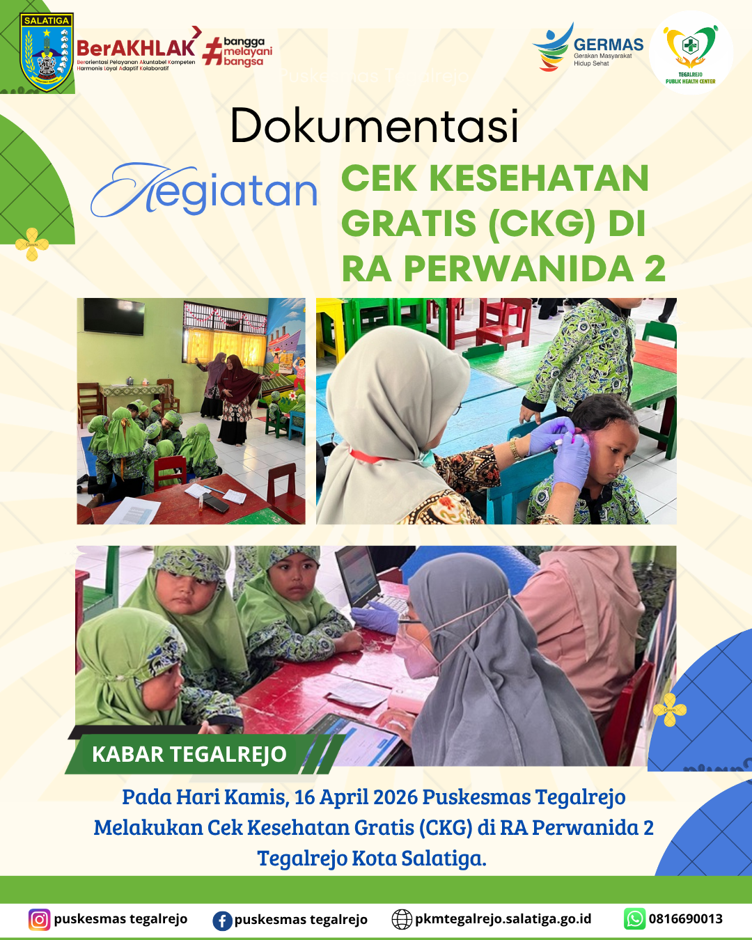 Pada Hari Kamis, 16 April 2026 Puskesmas Tegalrejo Melakukan Cek Kesehatan Gratis (CKG) di RA Perwanida 2 Tegalrejo Kota Salatiga.