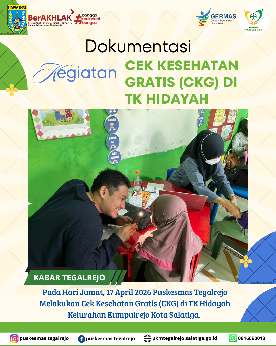 Pada Hari Jumat, 17 April 2026 Puskesmas Tegalrejo Melakukan Cek Kesehatan Gratis (CKG) di TK Hidayah Kelurahan Kumpulrejo Kota Salatiga.