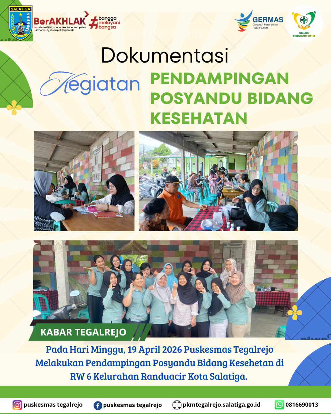 Pada Hari Minggu, 19 April 2026 Puskesmas Tegalrejo Melakukan Pendampingan Posyandu Bidang Kesehetan di RW 6 Kelurahan Randuacir Kota Salatiga.