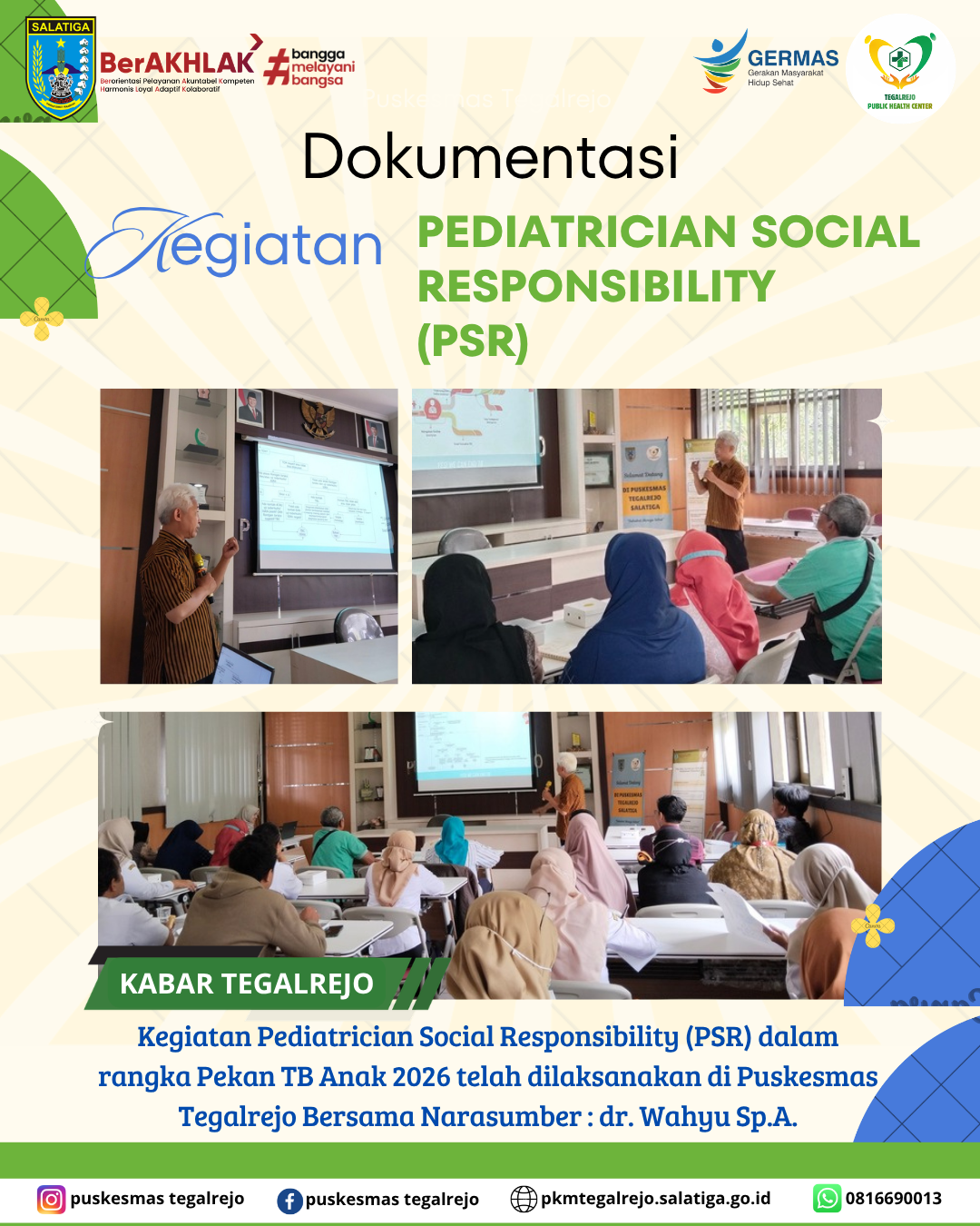 Kegiatan Pediatrician Social Responsibility (PSR) dalam rangka Pekan TB Anak 2026 telah dilaksanakan di Puskesmas Tegalrejo.
