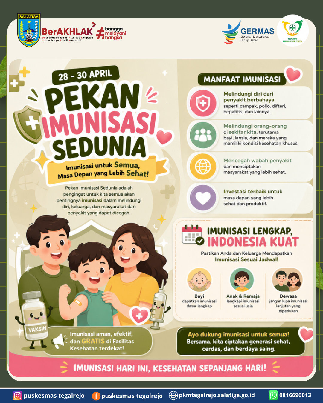 #PekanImunisasiSedunia#Imunisasi#AyoImunisasi#PuskesmasTegalrejo#CegahPenyakit#HidupSehat
